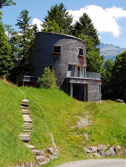 Ein Wachturm? Eine Wasserreservoir? Nein, ein Menschenhaus. Auf alle Fälle sticht es aus dem Durchschnitt heraus.