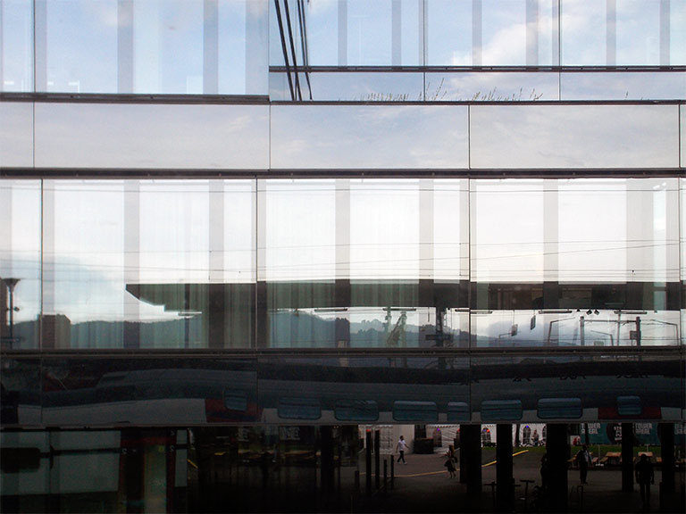 Das ist nicht mehr Dietikon, sondern Zürich beim Bahnhof Hardbrücke. Glasfassade wohin man schaut. Kein Baum, kein Bach, kein Fischreiher. Wir sind zurück in der Stadt. Und wir haben einen Nachtrag zum ersten Teil der Reise: die ‹Phänomena› findet nicht wie geplant stationär statt, sondern geht auf Tournee.