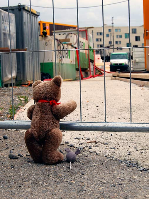 So sieht die Baustelle aus – es ist alles hinter Zäunen und Gittern versteckt. Wir marschieren an der Bibliothek wieder zur grossen Haltestelle mit dem roten Dach. Dann kommt unser Bärentransporter. Der ist gemäss Angaben der Limmattalbahn 44.10m lang, 2.40m breit und 3.61m hoch. Es haben 262 Menschen darin Platz. Von Bären steht nix.
