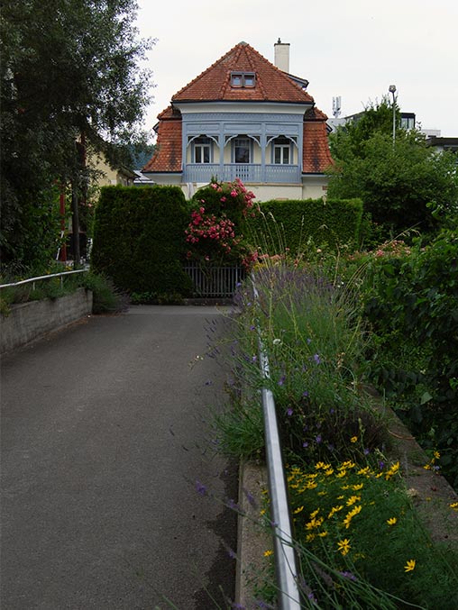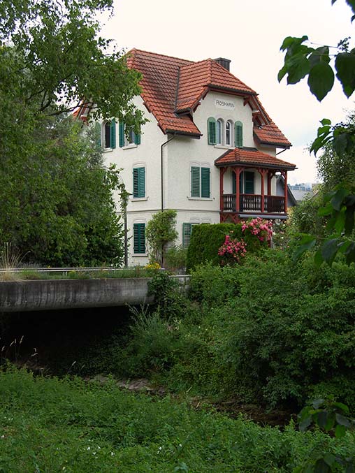 Keine 10 Minuten zu Fuss und wir sind in einem ruhigen Quartier mit schönen Häusern. Da sind noch Fenster in der Fassade, und Ziegel auf dem Dach.