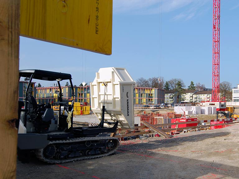 Ja, gebaut wird auch hier. Kräne, Maschinen, Baugruben, Werkzeuge, Beton, Armierungseisen. Und Krach.