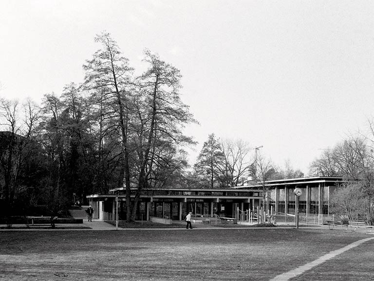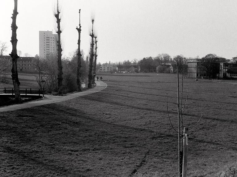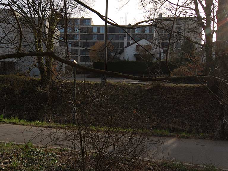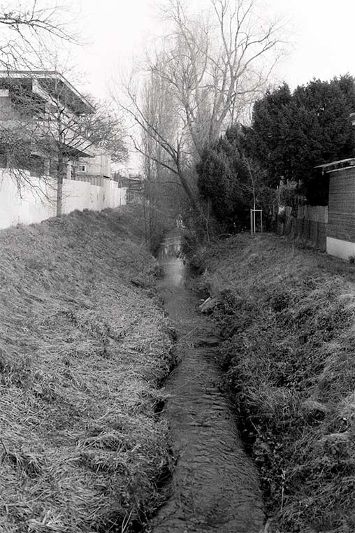 Der Mensch hat mehrere Kästchen, mit denen er Bilder macht (oder versucht, solche zu machen). Das sind Beispiele von solchen, die zuerst auf einem Film entwickelt werden müssen. Hier stehen wir über dem Chatzenbach und blicken Richtung grosser Tramhaltestelle.