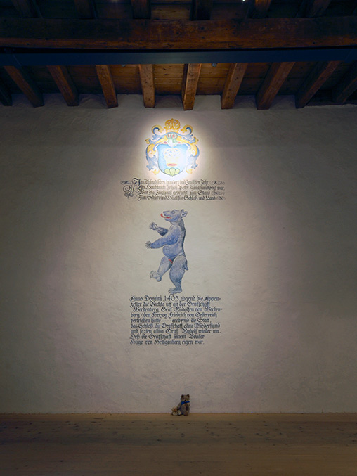 Aha, ein Bär. Endlich wird hier meinen Artgenossen Respekt erwiesen. Der Text erzählt eine Geschichte aus 1405, es kommen Appenzeller darin vor.