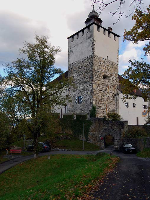 So sieht das Schloss von der Turmseite aus. Aus den Fenstern ganz oben sieht man ins Rheintal, also ins Land unserer Untertanen.