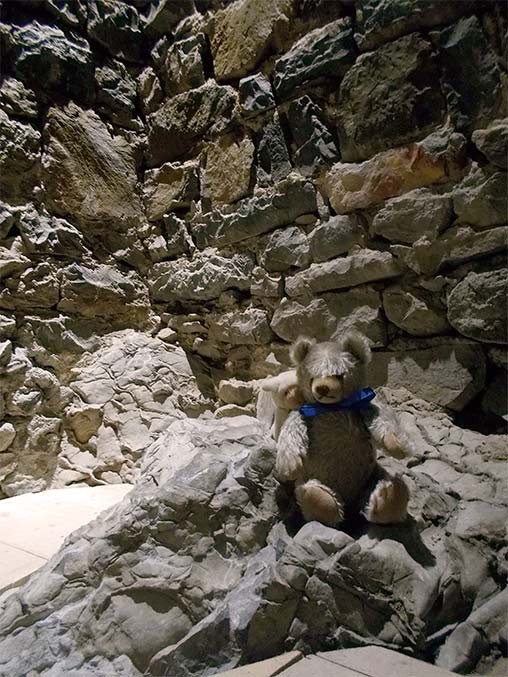 Rohe Steine bilden das Fundament. Hedwig ist das alles ein wenig unheimlich, und sie flüchtet sich hinter die starke Bärenschulter.