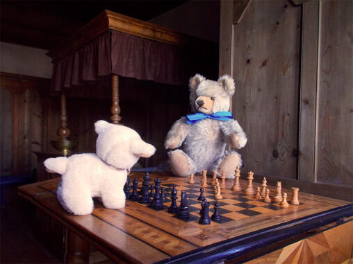 Ein Steiff Maskenbär und ein kleines Schaf verbringen einen Nachmittag im Schloss und dem Museum Werdenberg bei Buchs SG